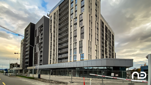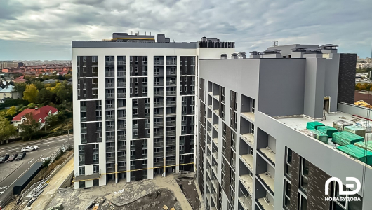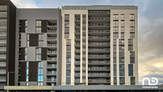У другій секції тривають фасадні роботи, облаштування внутрішньоінженерних мереж, стяжка підлоги, роботи з внутрішнього оздоблення, монтаж ліфтів і дверей.