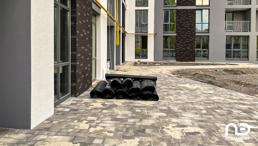 У підземному паркінгу завершено облаштування моноліту між 3 і 5 секціями. Триває гідроізоляція та роботи з благоустрою між 1 і 2 секціями, підготовка до облаштування підлоги паркінгу.