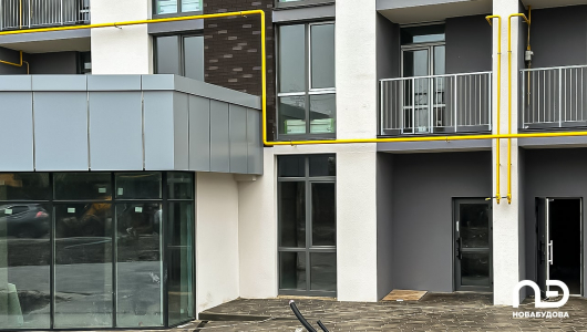 У другій секції завершено роботи зі стяжки підлоги. Тривають фасадні роботи, облаштування внутрішньоінженерних мереж, роботи з внутрішнього оздоблення, монтаж ліфтів і дверей.